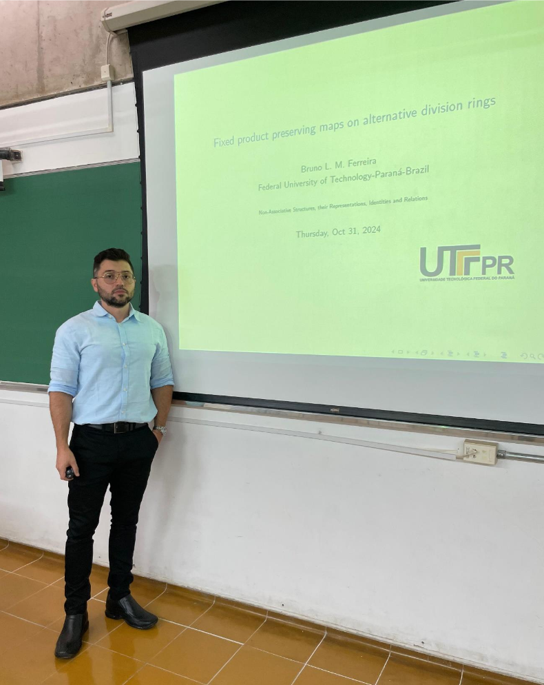 apresentação ocorreu às 14h na sala A-259 e fez parte do seminário “Álgebras de Lie e de Jordan